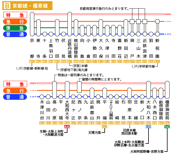 近鉄京都駅から奈良行き、大和西大寺行き、橿原神宮前行き、天理行き急行のいずれかに乗車し約30分、新祝園(しんほうその)駅で下車