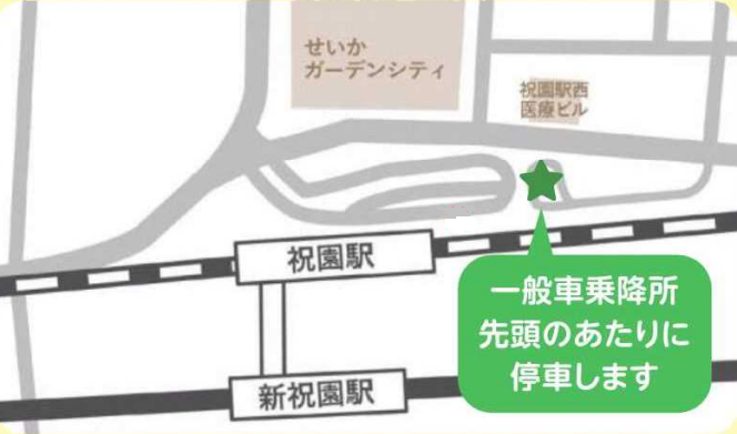 祝園駅西口乗車、東畑集会所下車、で日時と人数を予約してください。